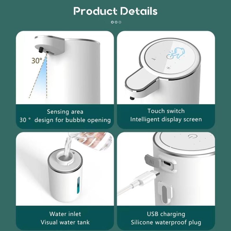 - USB Type-C Charge Foaming Soap Dispenser: Built-in 800 mAh battery(It usually takes 2-3 hours to charge) allows this foam soap dispenser could last for 90 days on a single charge ( Base on the frequency of use ),this non-contact electric soap dispenser is more environmentally friendly and cost-effective and comes without the worry of regular battery replacement.