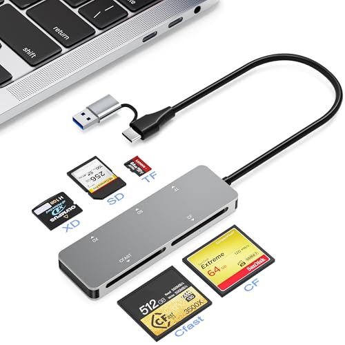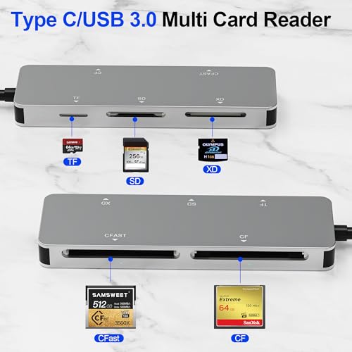 - Card Compatibity: CFast 2.0 reader built-in 5 card slots: CFast, CF(Compact Flash), SD, TF and XD card slots, Supports CFast, CF, SDXC, SDHC, SD, XD, CF(Compact Flash), Micro SDXC, Micro SDHC, Micro SD cards [support CF-I cards]