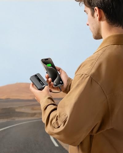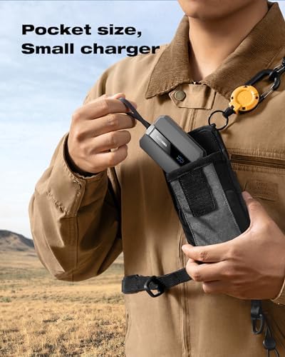 - ⚡Exclusive Dual-Port Cable Design: This portable phone charger boasts an innovative built-in dual-port charging cable design, featuring both Lightning and USB C connectors. It offers universal compatibility with Lightning and most Android devices, including iPhone 15/14/13/12/11/XR/8/7/6 and Samsung Galaxy S24/23/22, as well as other USB-C devices such as smartphones, tablets, cameras, headphones, small drones, USB lights, USB fans, heated vests, heated jackets, electric lighters, and more